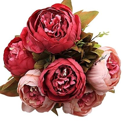 Amazon Com Duovlo Fake Flowers Vintage Artificial Peony Silk