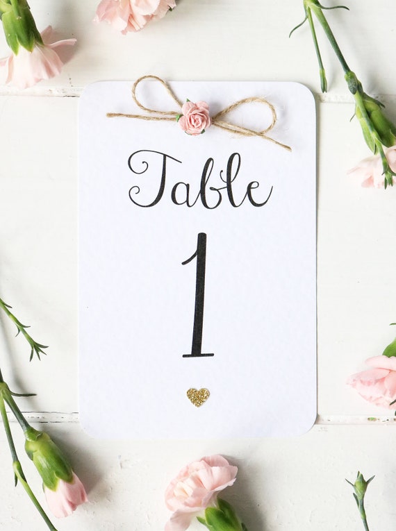 Carte Numero De Table Rustique Coeur Rose Et Or Mariage Etsy
