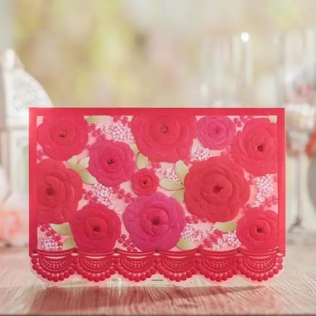 Cw5121 Rouge Roses Decoupe Au Laser Mariage Carte D Invitation Arabe
