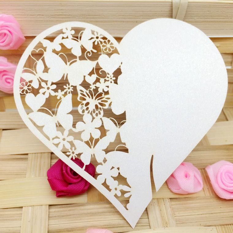 Laser Cut Place Cards With Hearts Butterflies Paper Cutting Name